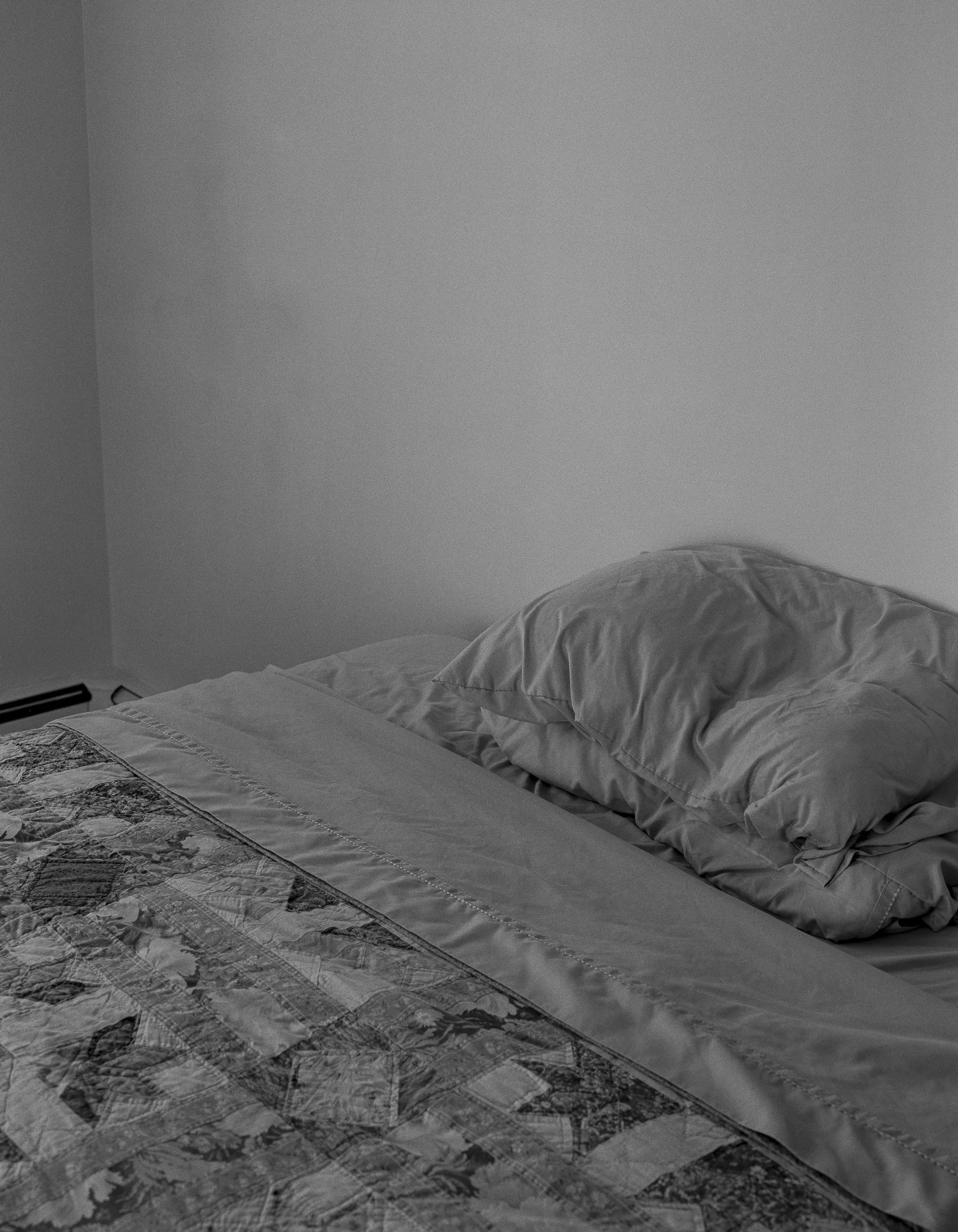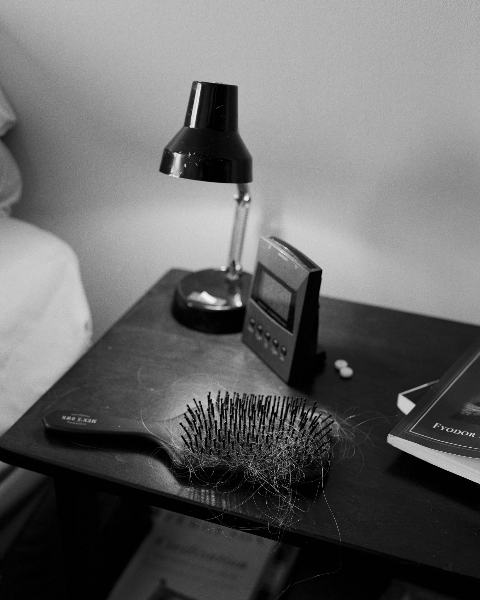 This process is slow and impractical. However, as a form of remembrance, this does not hinder the ability for me to connect with what’s in front of the camera. Like meditation, or a walk around the park—taking my time to look. Doing the dance of and deciding where to put the tripod, how high the camera should be, what to focus on, how to expose, among other meticulous choices—parallel the listening I strive for when with a friend. Black and white negative film enables the slow craft of handmade prints, a skill that Peter has perfected over the decades, and one that I strive to master myself. Slowing down and paying attention are two values I like to emphasize in my life and in my work. Being present and mindful are core to my values and making photographs in this way feel appropriate to the delicate parts of life.